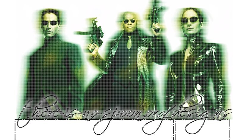 Welcome to there-is-no-spoon designs, featuring Neo, Trinity and Morpheous from The Matrix: Reloaded. This site offers both graphic and web design. So take a look around and hopefully you will find something you like! :)
